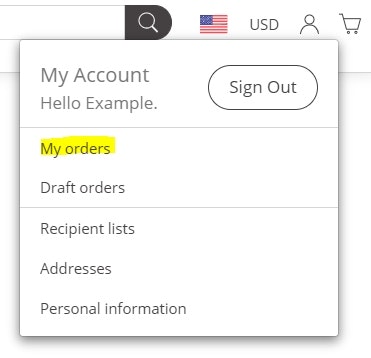 Find this information by navigating to the user icon in the upper right corner, then to 'My orders,' where the status will be available to view per order.